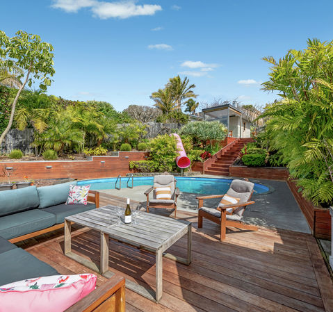 Perfectly positioned in sought-after Mellons Bay, this beautifully presented five-bedroom, three-bathroom home with an additional office/storage room offers the ultimate blend of family comfort and resort-style living with modern efficiency. The clever layout is designed with flexibility in mind - three bedrooms are located upstairs, while two more, along with a lounge, bathroom and office/storage room, are downstairs, making it ideal for teenagers, guests or extended family.